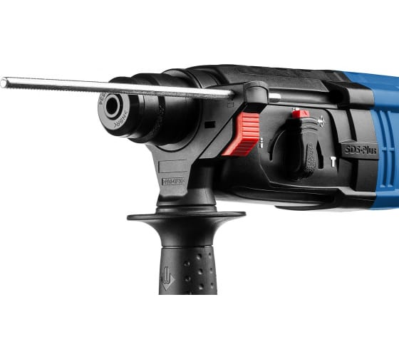 Перфоратор Зубр ЗП-24-750 К оснащен тремя рабочими режимами: сверление, сверление с ударом и чистый удар. Также имеется четвертое положение для поворота долота: это удобно, например, при демонтаже плитки. Мягкая накладка на основной рукоятке способствует комфортной работе. Защитная муфта предотвращает проворачивание инструмента в руках оператора при заклинивании оснастки.