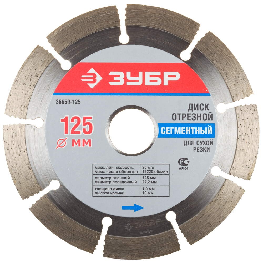 ДИСК АЛМАЗНЫЙ "ЗУБР" D-125 СЕГМЕНТНЫЙ (36650-125)
