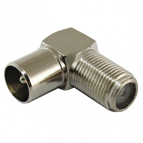 Переходник предназначен для соединения коаксиального кабеля (предварительно установленным F-разъёмом) с ТВ оборудованием, таким как (розетки -ТВ, ресиверы, приставки DVB-T2, антенны-ТВ и т.д.). Отличительной особенностью переходника является угловая форма, что позволяет подключить кабель к оборудованию под прямым углом 90°. Изготовлен переход из никелированного металла, контакты выполнены с высокими антикоррозийными свойствами.