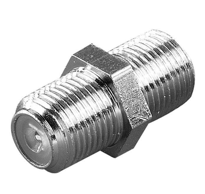 Соединитель F гнездо - F гнездо предназначен для соединения двух частей коаксиального кабеля, на концах которых расположены штекеры F-разъема. Применяется главным образом для подключения эфирного, кабельного и спутникового телевидения к телевизионному оборудованию. В частности, он позволяет увеличить длину антенного кабеля или соединить поврежденный участок. Разъем соединяет кабель методом накрутки F-коннектора с обеих сторон, после соответствующей зачистки контактов, и не требует в ходе монтажа применения каких-либо специальных инструментов. Такой высокочастотный соединитель имеет ряд положительных преимуществ: