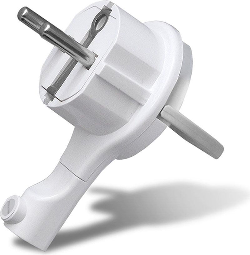Вилка-невидимка с заземлением служит для соединения со шнурами удлинителей или различных электроприборов. Особая форма корпуса изделия позволяет производить подключение к стационарной розетке в труднодоступных местах для избежания возникновения больших зазоров между стеной и шкафом/тумбой и пр. - в целях экономии окружающего пространства и создания эстетичного интерьера комнаты.