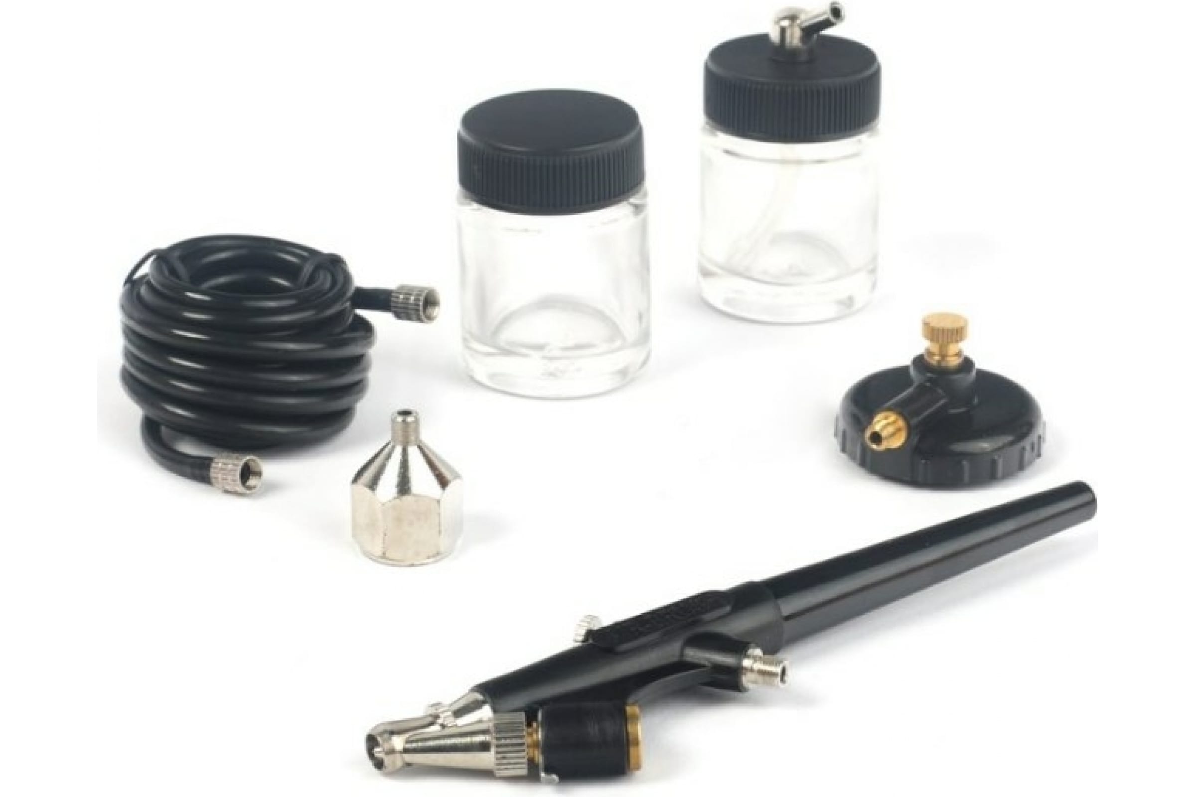 Аэрограф Patriot AB 200 с двумя сменными бачками, работающий на сжатом воздухе, используемый для профессиональных работ. Устройство оснащено прямой узкой рукоятью (ее удобно держать как карандаш) - для точного выполнения рисунков. Регулятор подачи краски и воздуха для точного нанесения. Большой ресурс позволит долго работать без остановок. Сменный бачок экономит время - его не нужно промывать.