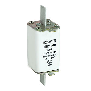 Предохранители  ПН 2-100 с неразборной плавкой вставкой предназначены для защиты электрооборудования промышленных установок и электрических сетей трёхфазного переменного тока напряжением 380 В частотой 50 и 60Гц и цепей постоянного тока с номинальным напряжением 220 В при перегрузках и коротких замыканиях.