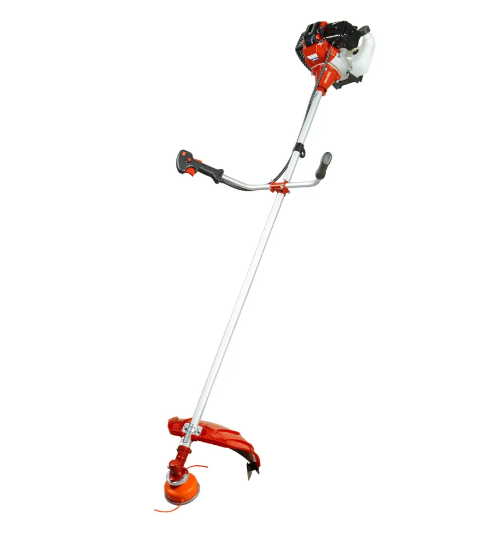 Рукоятка в виде велосипедного руля. Наплечный ремень для удобной работы, стартер с системой легкого пуска. Трёхлучевой нож и быстрозарядная катушка (леска 2,4 мм) входят в комплект.