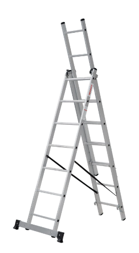Трехсекционная лестница является профессиональным приспособлением для работы на высоте.Общая высота 4,48м. Выдвижные секции по 1,88м, качественно фиксируются специальными четырехугольными скобами из стали, что исключает их самостоятельное складывание при эксплуатации. Модель удобна в транспортировке - траверса легко и быстро открепляется, что уменьшает ширину лестницы с 1 м до 35 см. Конструкцией предусмотрено наличие дополнительных ребер жесткости направляющих элементов.