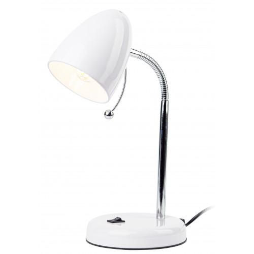 Настольный светильник ЭРА N-116-Е27-40W-W с цоколем Е27 компактного размера для удобного размещения на столе. Может использоваться с лампой накаливания, компактной люминесцентной лампой (КЛЛ) или светодиодной (LED) лампой. У светильника металлические стойка и плафон, выключатель на основании. Высота расположения плафона регулируется сгибающейся стойкой, направление света - наклоном и поворотом плафона в любом направлении.